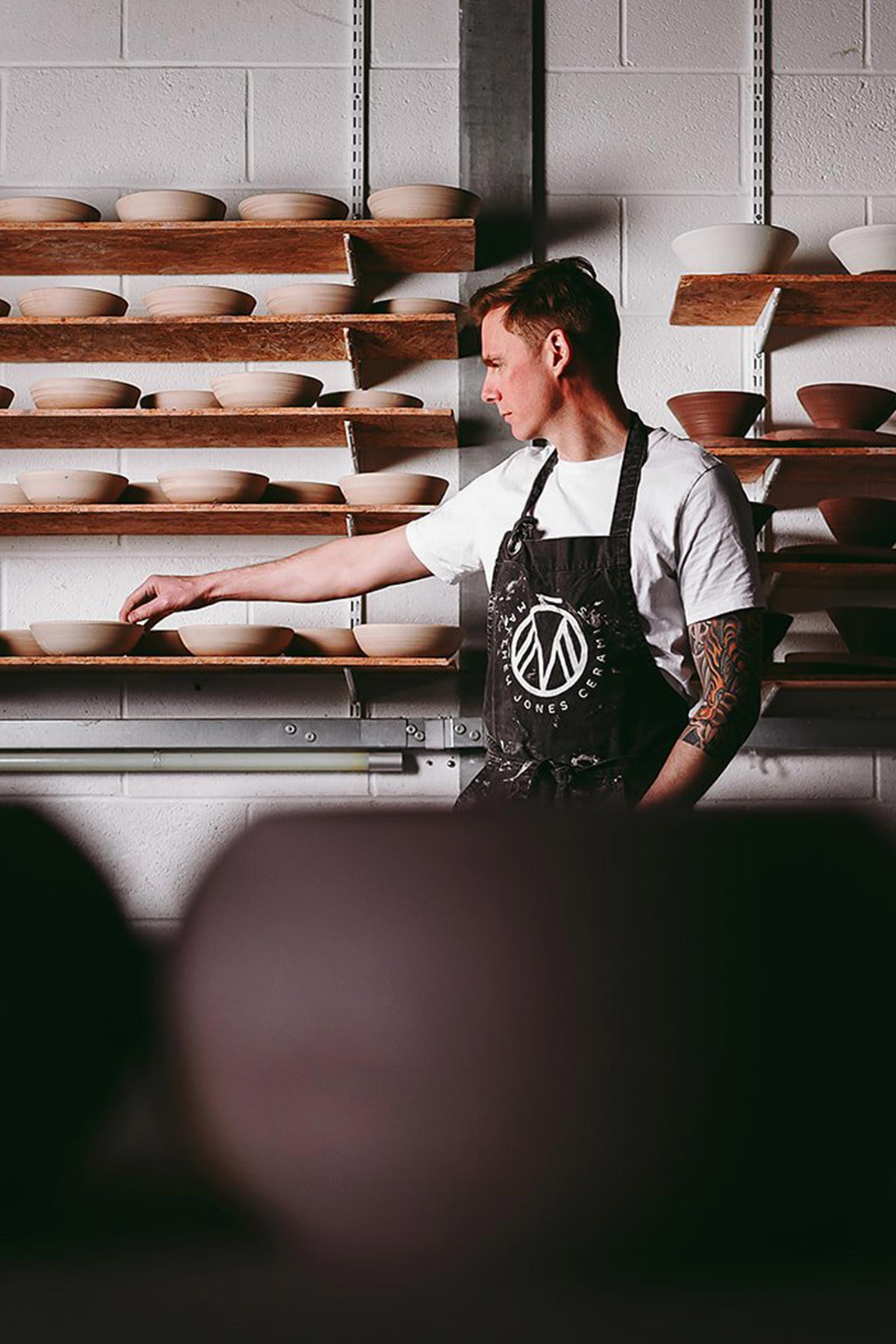 In 2017, ‘the brand evolved into Matthew Jones Ceramics, representing a natural progression and a testament to Matthew’s growth as an artist and entrepreneur. From his studio in Blackwood, Matthew crafts exquisite thrown tableware, meticulously designed for food service and preparation. His creations are distinguished by their unique glazes and finishes, showcasing his distinctive style.
